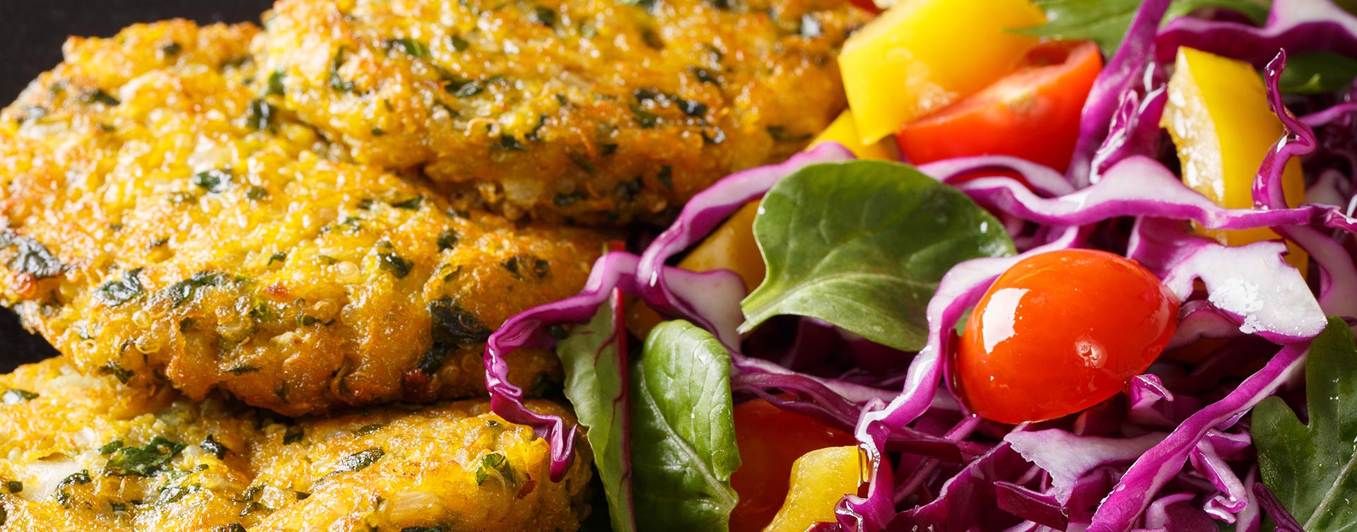 Herzhafte Gemüsetaler mit veganem Kräuterdip